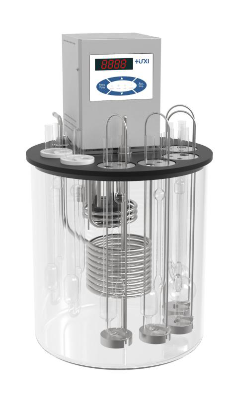 恒溫循環(huán)器安裝在水槽的頂部,配置有浸入式壓力吸力泵,可對(duì)浴槽液體進(jìn)行豎直和水平方向的攪拌,使槽內(nèi)液體溫度均勻,穩(wěn)定。浴槽蓋上可設(shè)計(jì)單孔及多孔(最多6孔),方便進(jìn)行多粘度計(jì)的測(cè)量和恒溫。