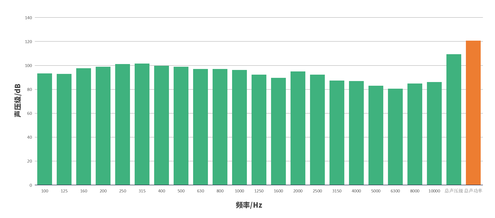 粉紅噪聲,消聲室內(nèi)距聲源中心1米處)