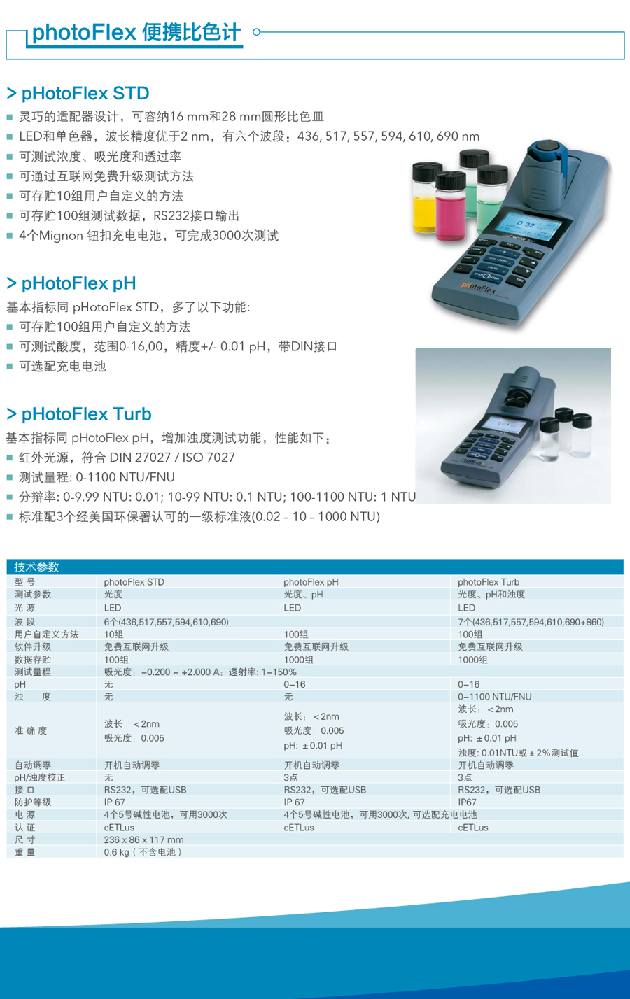 德國WTW pHotoFlex(STD/PH/Turb)便攜式光度計(jì)特點(diǎn):