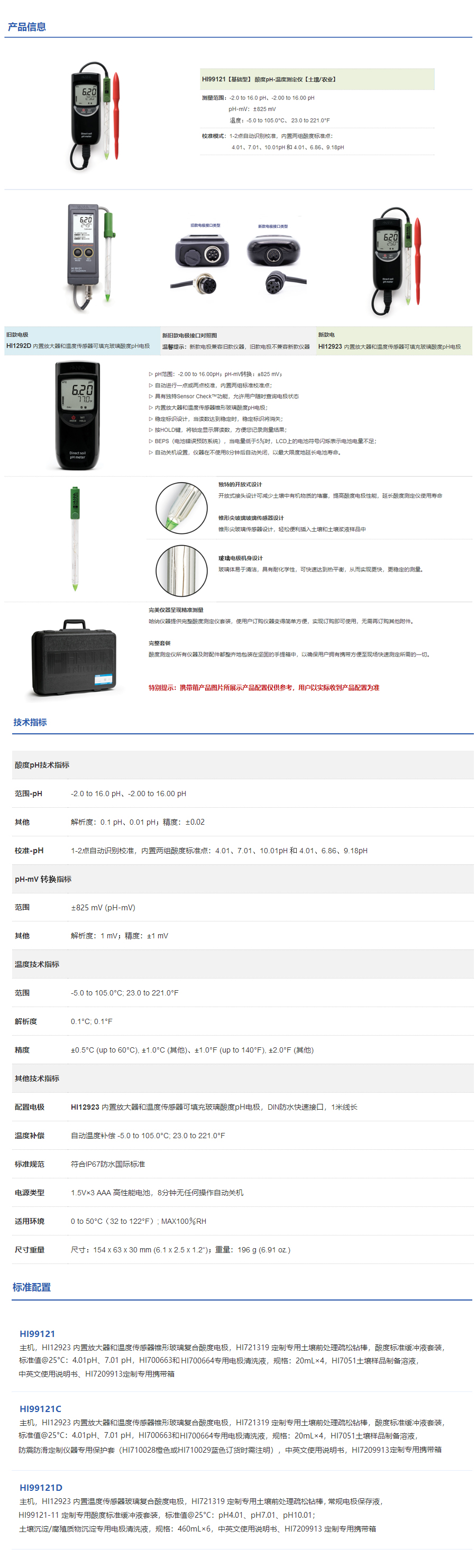 產(chǎn)品名稱:哈納 HI99121 酸度pH-溫度測定儀