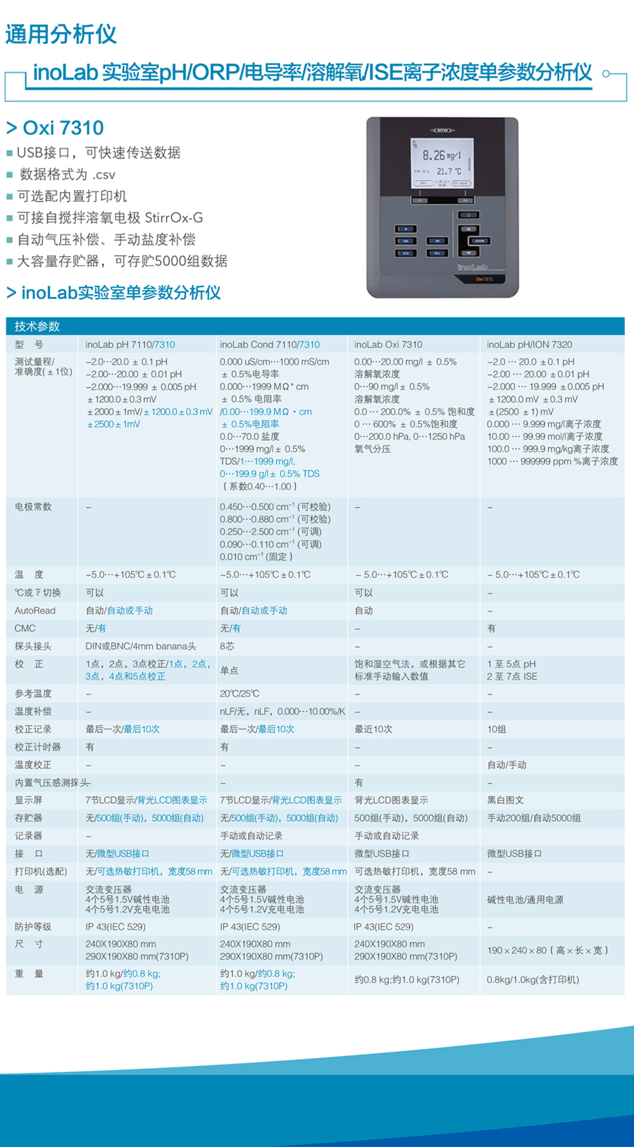 inoLab® Oxi 7310 實驗室專業(yè)溶解氧測定儀,僅主機,含電源適配器,支架和操作手冊,軟件和USB電纜 |