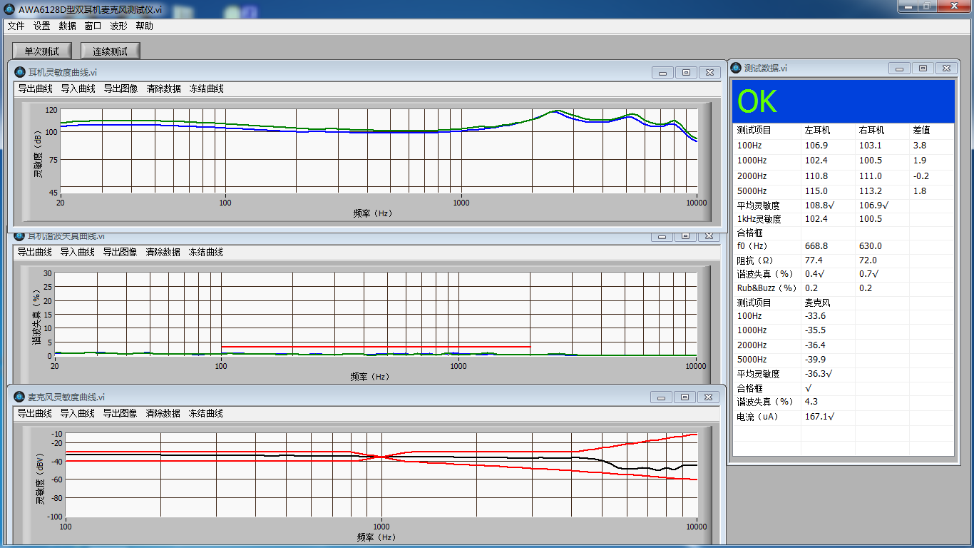 全中文的Windows界面,操作性更強(qiáng)。充分降低初期成本的投入和維護(hù)費(fèi)用,具有高效、強(qiáng)大的分析和處理能力。能快速地完成耳機(jī)麥克風(fēng)等電聲產(chǎn)品的測(cè)試,是基于生產(chǎn)線和質(zhì)量控制(QC)、操作簡易的 要求而開發(fā)的測(cè)試系統(tǒng)它將功率放大模塊,聲音測(cè)量模塊集成在一臺(tái)主機(jī)里,免去了用戶連線的煩惱。