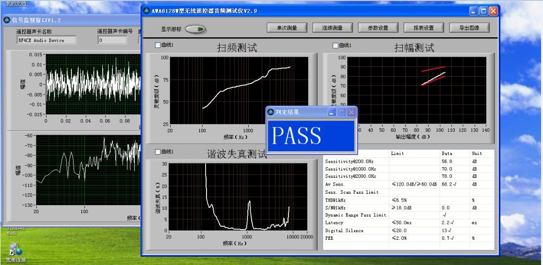 根據(jù)設(shè)定的門(mén)限自動(dòng)判斷合格品或不合格品。不合格項(xiàng)目自動(dòng)顯示X 字符,方便用戶找出不合格項(xiàng)目。測(cè)試結(jié)束后,簡(jiǎn)潔直觀的顯示出PASS/FAIL,極大的提高了測(cè)試效率。軟件能導(dǎo)出測(cè)試報(bào)表和圖像。儀器由電聲測(cè)試儀主機(jī)、消聲箱和專用的分析軟件組成。