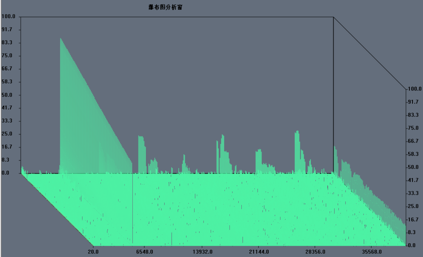 以時(shí)間、頻率、幅度三維坐標(biāo)形式展現(xiàn)產(chǎn)品一段時(shí)間的頻譜變化 |
