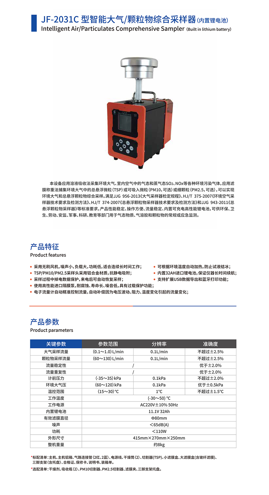 產(chǎn)品名稱:JF-2031C型智能大氣/顆粒物綜合采樣器(內(nèi)置鋰電池)