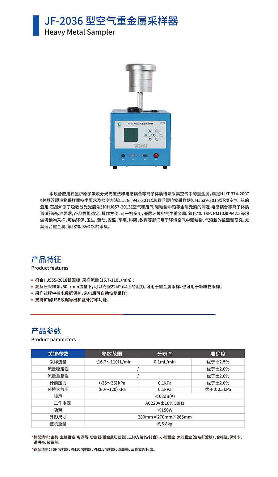 產(chǎn)品名稱:JF-2036型空氣重金屬采樣器