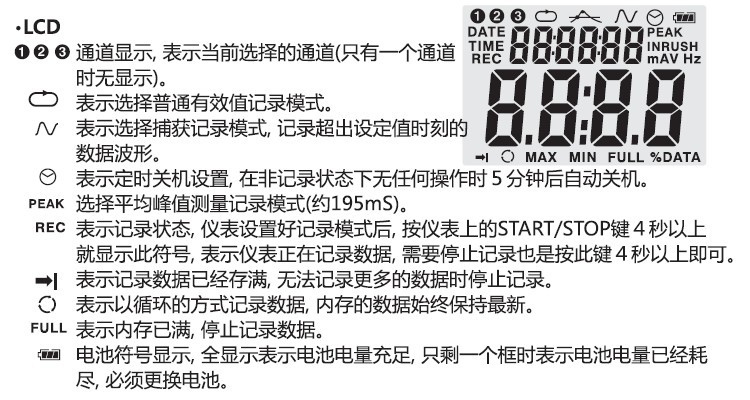 RTC:有真實(shí)時(shí)間顯示,軟件校準(zhǔn)。(若關(guān)機(jī)后再次開機(jī)時(shí)間仍然不正確就斷開所有測量,打開后蓋更換新的3V紐扣電池再次校準(zhǔn)即可)